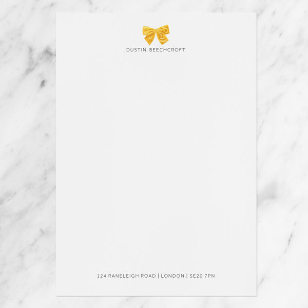 This yellow velvet bow letter writing set is personalised with the recipients name at the top of the paper and address at the bottom. If you'd like something different - do get in touch, I'm always happy to help.